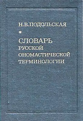 - Подольская Н. В. Словарь русской ономастической терминологии / Отв. ред. А. В. Суперанская; Рец.: Х. Ф. Исхакова; Институт языкознания АН СССР. — 2-е изд., перераб. и доп. — М.: Наука, 1988. — 192 с. — 23 000 экз. — ISBN 5-256-00317-8.