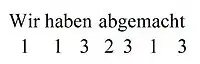 В словообразовательном анализе немецкого языка центральным понятием является морфема — минимальная значимая единица лексемы. Все морфемы немецкого языка подразделяются на лексические (то есть словообразовательные) и грамматические. Последние наблюдаются в составе грамматических форм в виде суффиксов (суффиксы числа), префиксов (префикс второго причастия глаголов) и флексий (например, флексия от Genetiv). Все морфемы чётко различимы. Так, например, в предложении (справа) отмечены три основы (1), один лексический префикс (2) и три грамматических аффикса (3).