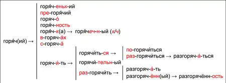 Совокупность словообразовательных гнёзд образует словообразовательную систему языка[16][17].