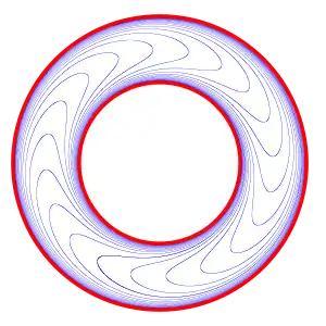 ![]() Слоение Риба в сечении центральной плоскостью |