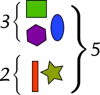 Одним из возможных решений будет обращение к набору объектов, которые могут быть легко разделены, например, пироги или стержни с сегментами[11]. Вместо комбинирования наборов сегментов стержни могут быть присоединены друг к другу концами, что иллюстрирует другую концепцию сложения: складываются не стержни, складываются их длины.