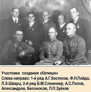 - Яков Ляховецкий. Дивизион резерва. О творцах «Катюши» (недоступная ссылка). Вторая мировая война: Непридуманные рассказы о войне (29 июля 2009). Дата обращения: 10 июня 2014. Архивировано 16 октября 2014 года.