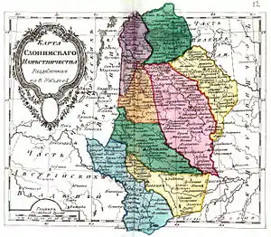 25 декабря 1795 года по указу императрицы Екатерины II из частей Брестского, Виленского, Гродненского и Новогрудского воеводств бывшего Великого Княжества Литовского было провозглашено образование Слонимской губернии с центром в городе Слониме[2], но решение не было реализовано[3].