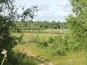 ![]() Слуды расположены на возвышенности. На заднем плане — река Молога | |