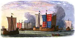 ![]() Битва при Слёйсе. Миниатюра из «Хроник» Жана Фруассара. XV в. | |||