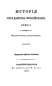 Н. Карамзин. «История государства российского». Титульный лист второго издания.