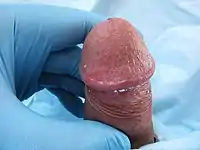 Мельчайшие железы (препуциальные), расположенные под крайней плотью, вырабатывают маслянистый секрет, называемый смегмой. В состав смегмы входят также омертвевшие клетки эпителия головки полового члена и крайней плоти. Образование смегмы начинается в период полового созревания и продолжается в течение всей жизни. Свежие выделения имеют белый цвет и равномерно распределены на поверхности головки, через некоторое время они приобретают желтоватый или зеленоватый оттенок. Смегма выполняет роль смазки, покрывающей головку и уменьшающей трение о неё крайней плоти.