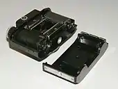 | Верхняя панель | Задняя стенка | Задняя стенка снята, вставлены две кассеты | Фотоаппарат и футляр |