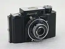 оптический | 1/10, 1/25, 1/50, 1/100, 1/200, «В» | раздельный, маховиком | нет, использование пустой приёмной кассеты | синхроконтакт «Х» на части выпуска |