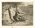 Очень успешным оказался офорт Милле «Смерть и дровосек», своей художественностью напоминающий шедевр немецкого мастера XVI века Ганса Гольбейна из серии «Пляска смерти», а философским оттенком выдерживающий сравнение с офортами Рембрандта. К тому же благодаря большому тиражу офорт, в отличие от картины, познакомил с удачной композицией художника широкий круг любителей искусства.
