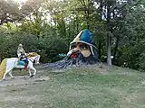 Поляна сказок. Детский парк в Симферополе. Руслан - скульптор Л. С. Смерчитский, Голова брата Черномора - скульптор В. И. Солощенко.