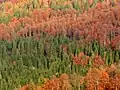 - В Калифорнии — секвойя, тсуга западная, пихта Дугласа, сосна жёлтая, дуб двуцветный;