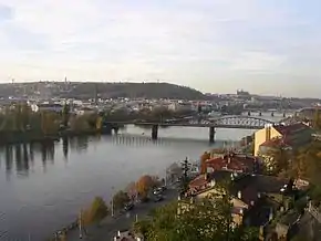 ![]() Смихов расположен на левом берегу Влтавы к югу от Петршинского холма, вид из Вышеграда | |