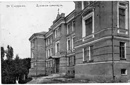 ![]() Здание Смоленской духовной семинарии (ныне принадлежит Министерству обороны и находится на территории военного городка по улице Реввоенсовета). | |