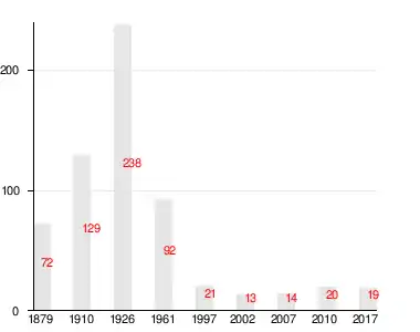 | 1879 | 1910 | 1926 | 1961 | 1997 | 2002 | 2007[16] |
