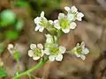 Цветки грязно-пурпурные, с плоским блюдцеобразным гипантием, собраны в рыхлые кистевидные соцветия. Время цветения — июнь.