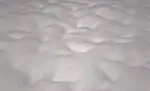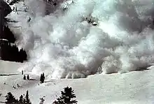 Снег, выпавший на горных склонах, может превратиться в снежную плиту, которая может скатиться по крутому склону в виде лавины. Замороженный эквивалент росы, известный как иней, образует формы снежного покрова на охлаждённых предметах, когда ветры слабые[15].