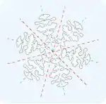 У разных авторов я нашёл рисунок этого весьма редкого вида снежинок, но везде только в самых общих чертах, без подробностей. Ни на одном, например, не показаны спицы внутри дисков и иглы, расположенные на их наружном крае.