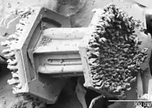 Особенно поразило меня в этих снежинках оригинальное образование на наружном крае дисков, украшенных рядом игл, вертикально стоявших на самом наружном крае диска. Число этих игл, которые казались мне также трёхгранными пирамидами, всегда строго соответствовало числу спиц диска, и притом на каждую спицу приходилось по 4 иглы с.