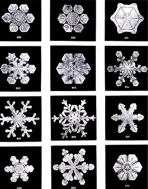 В 1885 году, после множества проб и ошибок, американский фермер Уилсон Бентли по прозвищу «Снежинка» получил первую удачную фотографию снежинки под микроскопом. Он занимался этим сорок шесть лет, сделав более 5000 уникальных снимков. На основе его работ было доказано, что не существует двух абсолютно одинаковых снежинок (что впоследствии существенно дополнило теорию кристалла).