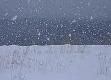Интенсивность снегопада определяется по видимости. Когда видимость составляет более 1 км, снег считается лёгким. Как «умеренный снег» описывается снегопад, ограничивающий видимость расстоянием в 0,5—1 км. Сильным снегопад называют, когда видимость составляет менее 0,5 км[16]. Устойчивый снег значительной интенсивности часто называют «метелью» (снежный шторм)[17].
