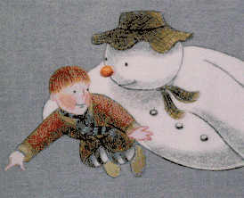 - в исходном варианте автор книги Рэймонд Бриггс идёт по полю и рассказывает о том, какой снежной была зима в том году, когда он писал книгу;