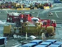 В аэропортах используются специальные системы для плавки снега и льда, загрязнённого противообледенительными средствами, в частности, производства компаний Aero Snow (используется в Чикаго, работает на авиационном топливе) и Trecan Combustion Limited (используется в аэропорту Торонто)[4].