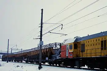 - самоходные — у головной машины которых одна из тележек приводная, с двумя тяговыми электродвигателями
