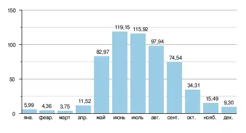 | Расход воды | 48 м³/с (5 км от устья) |