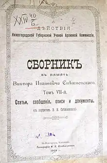 - Снежневский В. И. Губернские учёные архивные комиссии и архивное дело в них // Труды Ярославского областного съезда (съезда исследователей истории и древностей Ростово-Суздальской области). М., 1902. С. 7-26.