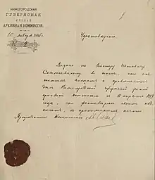 На первом месте ….по количественным и качественным результатам следует поставить работы правителя дел комиссии В. И. Снежневского, при помощи которого выполняется главное назначение комиссии по разбору и описанию её исторического архива.