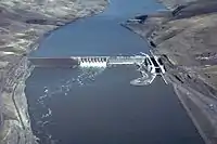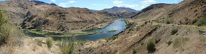 Вторым важным проектом по строительству дамб был проект Хеллс-Каньон, который возглавлялся энергетической компанией Айдахо и стартовал в 1940-е годы. Три дамбы, построенные в рамках проекта: Браунли, Оксбоу и Хеллс-Каньон — расположены в верхней части ущелья Хеллс. Все три дамбы предназначаются главным образом для производства электроэнергии и борьбы с наводнениями и не имеют шлюзов для судов и устройств для прохождения рыбы[52]. Самая верхняя их трёх плотин, Браунли, была построена в 1959 году. Здесь вырабатывается 728 МВт электроэнергии. Дамба Оксбоу, завершённая в 1961 году, позволяет вырабатывать 220 МВт энергии, а плотина Хеллс-Каньон (1967) — 450 МВт электроэнергии[53].