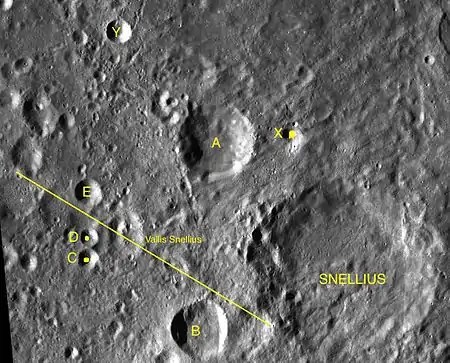 - Образование сателлитного кратера Снеллиус A относится к нектарскому периоду[1].