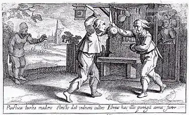 В 1618 году выходит труд Якобуса Маркуса «Deliciae Batavicae», на иллюстрациях к которому среди различных жанровых сценок и бытовых зарисовок из крестьянской жизни имеется одно из самых ранних иконографических свидетельств существования в Голландии культуры народных поединков. На одной из гравюр изображены двое крестьян с ножами в правой руке и войлочными шляпами в качестве импровизированных щитов в левой. Дуэль происходит на площадке перед таверной, и за поединком с интересом наблюдает толпа зевак.