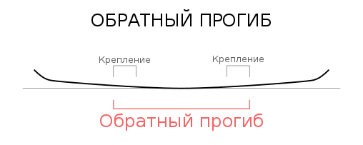 Обратный прогиб (встречается так же название банан, англ. Reverse camber, так же иногда встречается название Rocker(K-2) или «V-Rocker»(Burton) (рус. рокер) — которое является торговой маркой сноубордов с обратным прогибом компании K2, первой выведшей сноуборды с данным видом прогиба на рынок) — такой прогиб сноуборда, когда в ненагруженном состоянии центр опирается на поверхность, а края приподняты. В отличие от классического прогиба не загружает концы доски, что позволяет, например, с большей лёгкостью выполнять трюки на вращение на склоне, держаться на поверхности не укатанного снега. Но при этом такой сноуборд менее стабилен на больших скоростях.