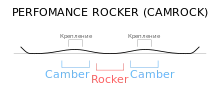 Смешанный вариант прогиба может использоваться в сочетании с переменным радиусом выреза, что позволяет влиять на радиус поворота в зависимости от угла закантовки доски[6][7].