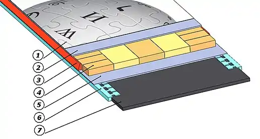 - Сэндвич (англ. sidewalls — боковые стенки) — представляет собой оклейку сердечника сверху и снизу двумя плоскими слоями стекловолокна, края сердечника закрываются узкой полоской АБС-пластика. Такая конструкция тяжелее, гибче, проще ремонтируется и существенно лучше работает на предельных нагрузках[2][3]. Из-за того, что такая конструкция дороже в изготовлении, изначально она применялась только в топовых горнолыжных снарядах[4].