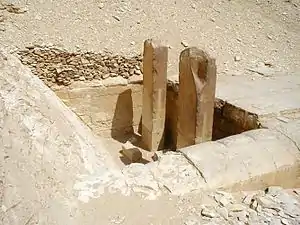 В ансамбль при пирамиде входили два заупокойных храма. Верхний, построенный возле восточного фасада гробницы, сильно поврежден. Он много раз переделывался и расширялся. Основным материалом здесь служил сырцовый кирпич. Первоначально храм состоял из маленькой часовни с двумя стелами по сторонам и столом для жертвоприношений перед ней. Он был переделан и расширен, вероятно, в эпоху Среднего царства и, возможно, в Позднюю эпоху или при Птолемеях.