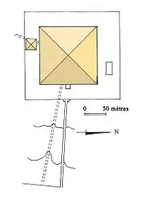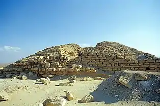 К востоку от Ломаной пирамиды находятся развалины маленького храма. Весь комплекс был огорожен каменной стеной двухметровой толщины.
