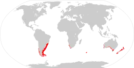 Распространены в субтропических и умеренных водах Южного полушария. Юго-западная Атлантика: Уругвай, Аргентина, Огненная Земля. Восточная Атлантика: острова Тристан-да-Кунья, Южная Африка. Западная часть Индийского океана: Южная Африка, острова Сен-Поль и Амстердам. Восточная часть Индийского океана: Тасмания и юг Австралии. Юго-западная Пацифика: Новая Зеландия и юг Австралии. Юго-восточная Пацифика: юг Перу, Чили[7].