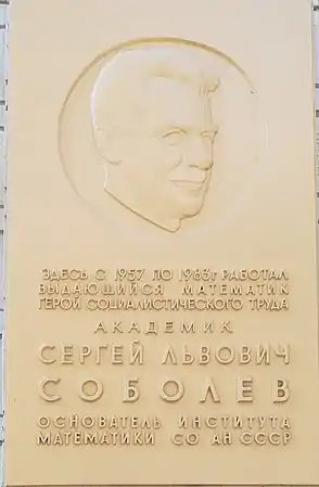 Серге́й Льво́вич Со́болев (23 сентября [6 октября] 1908, Санкт-Петербург — 3 января 1989, Москва) — советский математик, занимавшийся математическим анализом и дифференциальными уравнениями в частных производных. Герой Социалистического Труда. Лауреат трёх Сталинских премий и Государственной премии СССР. Академик АН СССР (1939) по Отделению математических и естественных наук.