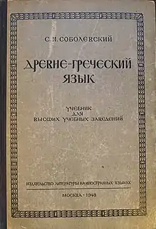 - Древнегреческий язык: Учебник для высших учебных заведений / Ред. И. Х. Дворецкий. М.: Изд-во литературы на иностранных языках, 1948. Репринты: СПб.: Летний сад, 1999; М.: Лань, 2002.