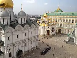 ![]() Слева направо: Успенская звонница, Архангельский собор, Успенский собор | |