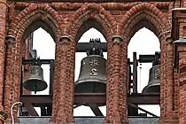 В левой боковой части фасада, прямо за стрельчатой аркадой, расположено пять колоколов, изготовленных на знаменитой польской фабрике Фельчинских в Перемышле и подаренных Тарновским епископом Виктором Скворцом. Самый большой из колоколов весит 900 кг и носит название «Фатимская Божья Матерь». Остальные, в порядке убывания, называются: «Иоанн Павел II», «Святой Фаддей» (в честь небесного покровителя архиепископа Тадеуша Кондрусевича), «Юбилей-2000» и «Святой Виктор» (в честь небесного покровителя епископа Скворца). Колокола приводятся в движение специальной электронной автоматикой, пульт управления которой находится в ризнице собора.