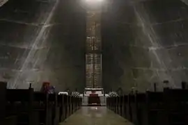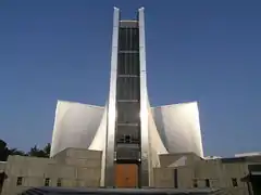 Храм построен в форме креста. Фасад состоит из восьми гиперболически изогнутых стен[2]. Колокольня находится в 40 метрах от церкви и её высота составляет 60 метров.