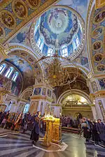 Храм представляет собой небесно-голубого цвета здание с золотыми куполами. Высота собора — 21 м, колокольни — 47 м. Нынешний облик храма — это, по меньшей мере, четвёртая реконструкция здания. В отделке стен и пола использован камень — розовый итальянский, белый греческий и жёлтый пакистанский мрамор. Зеленые плитки мозаики — итальянский серпентинит, серо-голубые — южноафриканский гранит. Все стены и потолки расписаны.