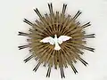 Замковый камень церкви с голубем святого духа и лучами Иисуса