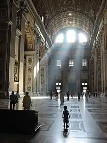 Занимает первое место в списке семи паломнических базилик Рима[1]. Над его созданием трудилось несколько поколений великих мастеров: Браманте, Рафаэль, Микеланджело, Бернини, Мадерна. Вместимость — около 15 тысяч человек внутри собора и 60 тысяч человек на площади.