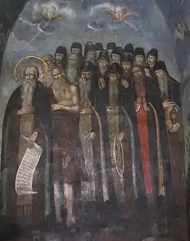 ![]() Лик преподобных отец (фреска, Киево-Печерская лавра) | |