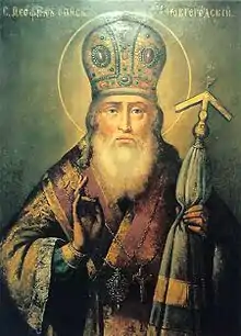| Феофил Новгородский (Печерский) | Был последним епископом Новгорода, по смерти архиепископа Ионы 5 ноября 1470 года избранным (15 ноября 1470 года) чрез жребий из кандидатов, представленных новгородским вечем; поставлен в Москве митрополитом Московским Филиппом I 15 декабря 1471 года. Трудный жребий выпал на долю святителя по управлению новгородской паствой: посадница Марфа Борецкая и её приверженцы вооружали и возмущали народ против великого князя Московского Иоанна III, а монах Пимен, сторонник Борецких, разжигал в пастве ненависть к архиепископу. Некоторые из новгородцев склонялись перейти на сторону Литвы, изменив Московскому князю, и готовы были пойти на вероотступничество. Святитель Феофил останавливал мятежных новгородцев: «Не изменяйте Православию или не буду пастырем отступников, уйду назад в смиренную келью, откуда извлекли вы меня на позорище мятежа». Сохранилась отреченная грамота святителя, написанная в 1479 году. Однако ослеплённый народ не внимал словам пастыря: между Новгородом и Москвой разгорелась междоусобная война. Разбитые новгородцы вынуждены были просить пощады, и многие из них обязаны жизнью заступничеству святителя. 19 января 1480 года повелением великого князя был сведён с кафедры и заточён в Московский Чудов монастырь. Там он «сидел полтретья лето, ту и преставися.» По преданию, когда святитель Феофил лежал больной в Чудовом монастыре, во сне явился к нему святитель Нифонт Новгородский, похороненный в пещерах преподобного Антония Печерского, и напомнил об обещании поклониться Печерским чудотворцам. Святой архиепископ отправился в Киев и уже приближался к Днепру, как болезнь его усилилась, и он получил откровение, что хотя не дойдёт живым до пещер, но тело его упокоится в них. Это исполнилось, он был погребён в Дальних пещерах. | 26 октября | ![]() |